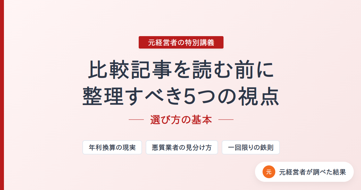 比較記事を読む前に、まず自分がどの状況にいるのかを確認する——この一手間が、後悔のない判断につながります。