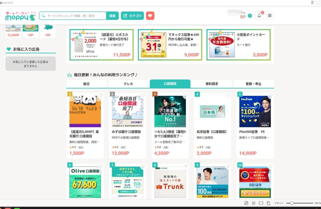カテゴリーを「口座開設」に絞ってみると、思っていたより案件が並んでいました。