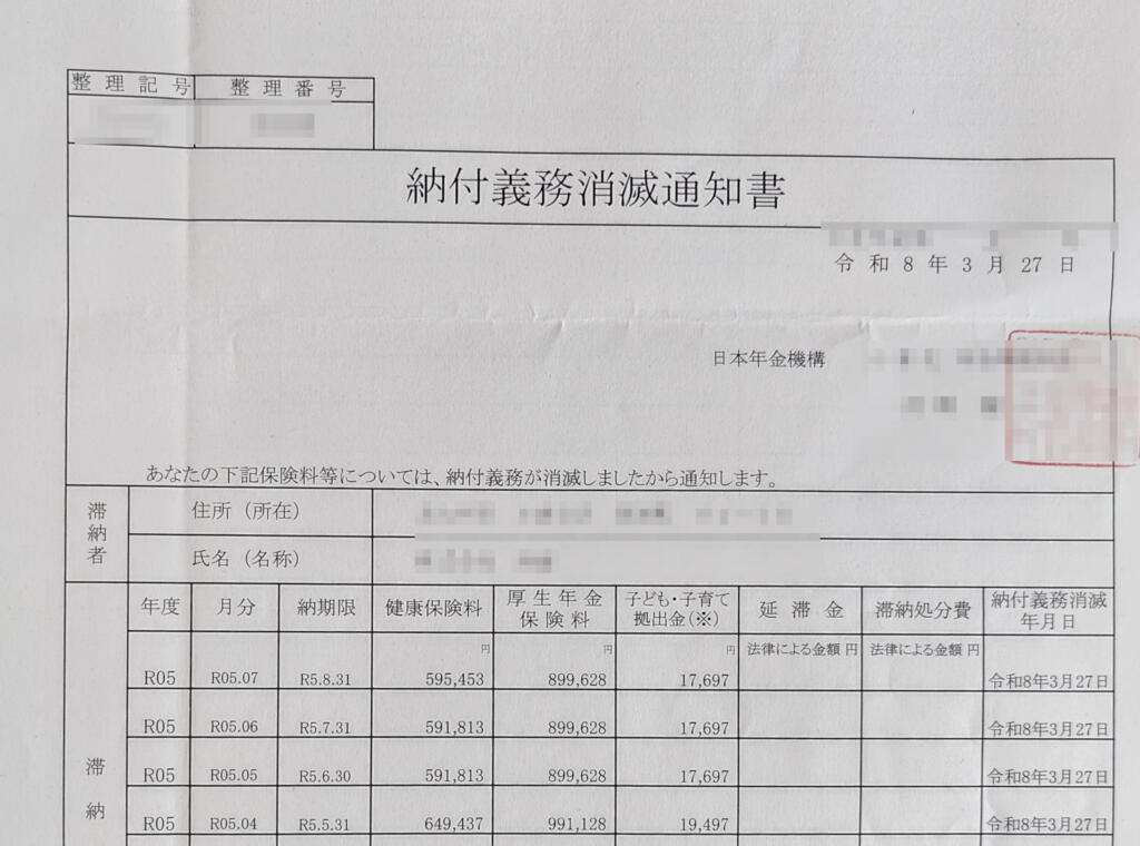 あなたの下記保険料等については、納付義務が消滅しましたから通知します。